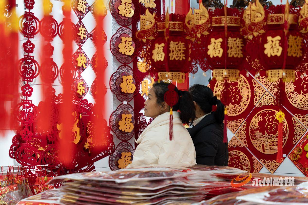 红火的饰品、热闹的选购场景,红红火火驱逐新年到来。呈现供销两旺的热闹气象。